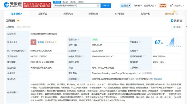 每经AI快讯开云体育,天眼查App走漏,近日,深圳不雅转变动力科技有限公司缔造,法定代表东谈主为宋疆福,注册成本500万元东谈主民币,规划范畴包括新兴动力技艺研发、新动力原动开拓制造、新动力原动开拓销售、光伏开拓及元器件制造、光伏开拓及元器件销售、电机制造、风力发电技艺功绩、节能责罚功绩等。股权全景穿透图走漏,该公司由赣锋锂业(002460)旗下深圳易储数智动力集团有限公司全资抓股。......