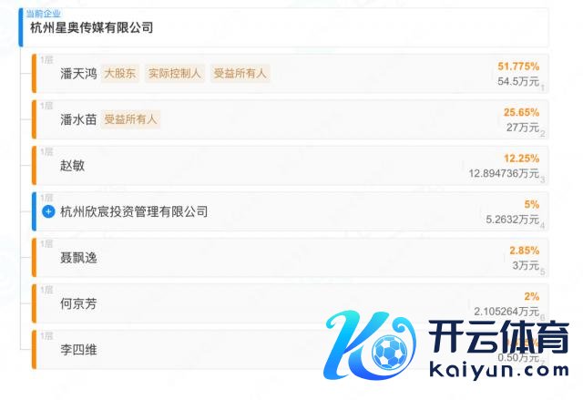 在杭州星奥传媒文化有限公司的持股信息里,潘水苗有 25.65% 的持股