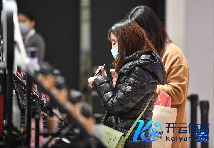 耗尽者在中免集团海口日月广场免税店选购化妆品(1月19日摄)。