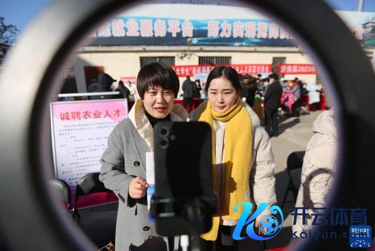 1月29日,用东说念主单元在湖北省宜昌市秭归县的新春东说念主才招聘会上进行直播,线上先容岗亭信息。