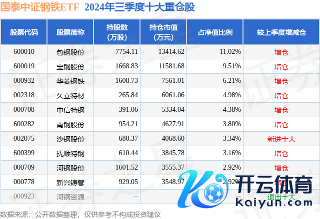 国泰中证钢铁ETF为指数型-股票基金,凭据最新一期基金季报显现,该基金钞票确立:股票占净值比99.2%,无债券类钞票,现款占净值比0.8%。基金十大重仓股如下: