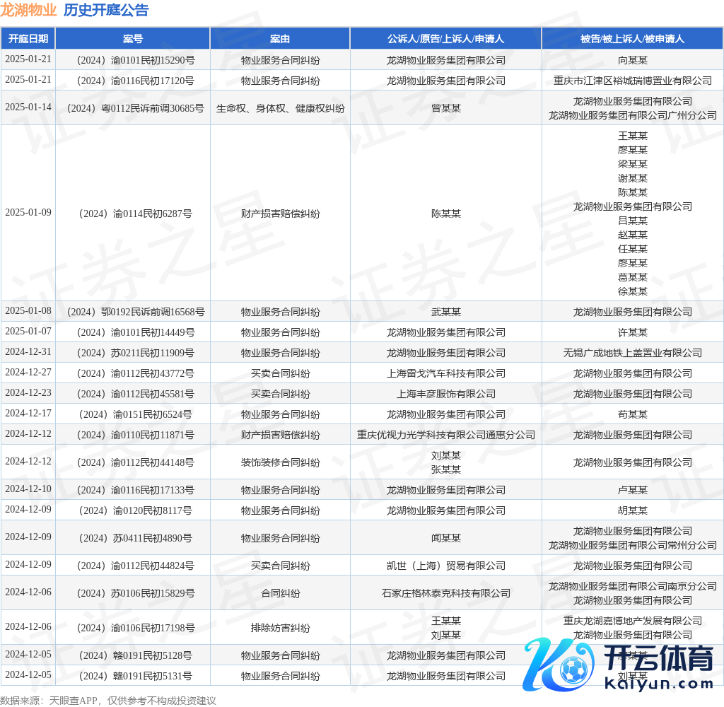 本站音问云开体育,凭据天眼查APP露馅,近日公布了一则龙湖物业处事集团有限公司动作被告/被上诉东说念主的开庭公告,留意本色如下: