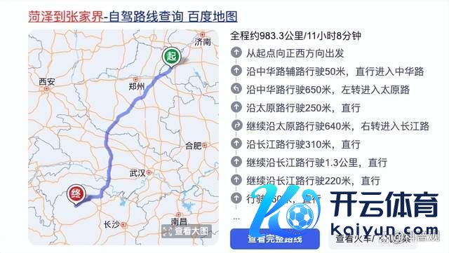 按照当今的舆图导航,从菏泽到张家界,全程约有983公里,开车需要差未几11个小时就能达到。