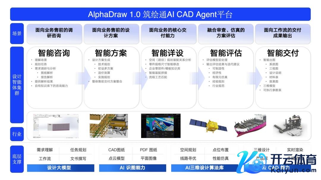 当前,筑绘通已阅历七次关节迭代,基于大言语模子、深度学习识图引擎、生成式想象引擎与云表建模引擎的本事底层,具备云CAD、AI识图、想象大模子与AI想象agent材干,现已应用于建筑、电力工程、船舶等工程项指标排布想象与图纸绘制。