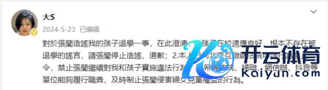 值得注视的是,在吞并天,大 S 生前在微博发的终末一个诉求也杀青了。在大 S 生前在微博发的终末一条微博提到:"但愿抖音等单元大致扩展责任,实时制止张兰侵害妇犬子童权力的行径。"