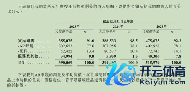 XREAL的收入来自AR眼镜销售、配件销售和技巧劳动,其中公司九成以上的收入齐来自AR眼镜的销售。2025年公司总收入5.16元,其中AR眼镜销售收入4.03亿元。