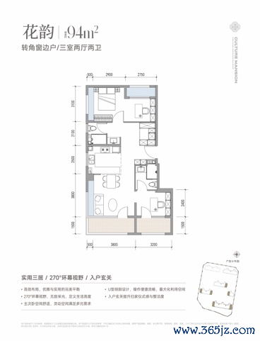 ●户型实用率超90%,层高约3米;建筑面积约94㎡三居可失色商场100㎡+居品,孤立家政间、明厨明卫、开敞阳台一概不缺;