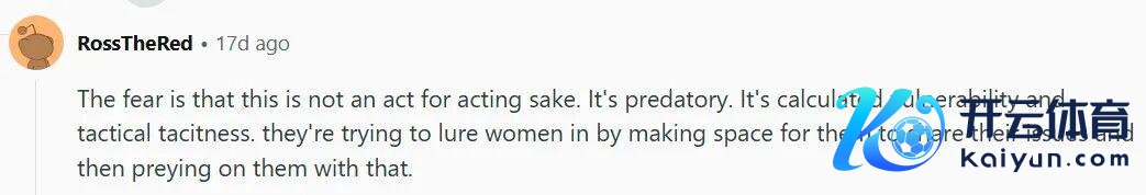 “饰演男”用功让我方看起来更受跨越女性的好奇,主动相投女性,偶合站在了“有毒男”的对立面。