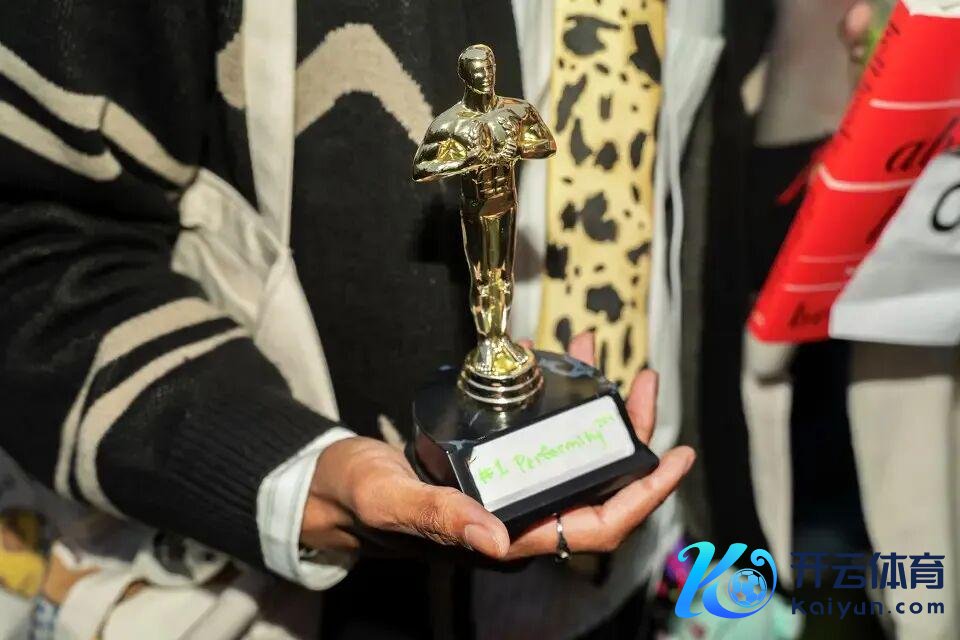 其中一场比赛,一位带了两个拉布布的男孩夺得冠军,搞笑的是,奖杯真的是奥斯卡小金东谈主,疑似讥笑“饰演男”只须演技。